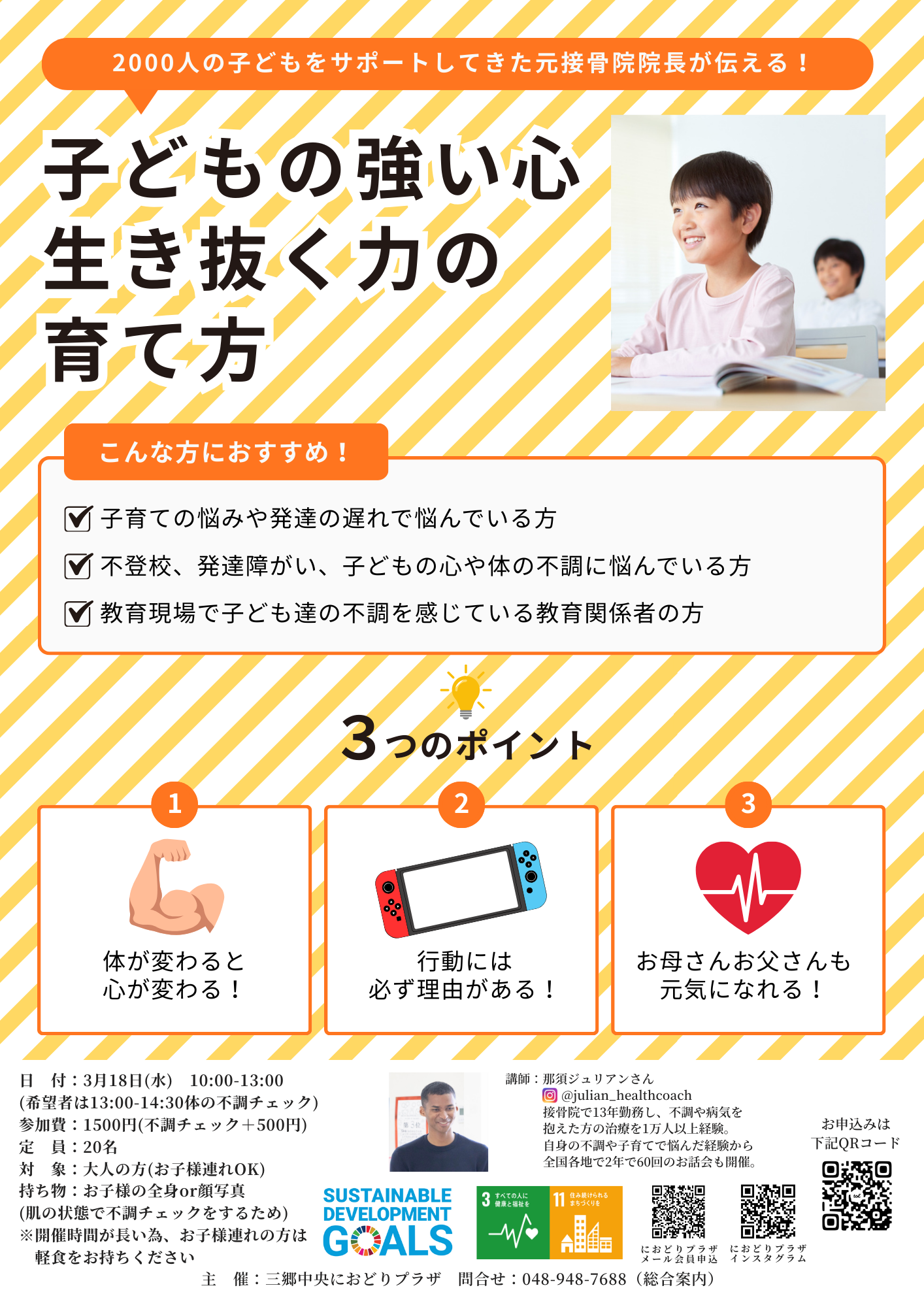 「体が変われば心が変わる」「行動には必ず理由がある」「お母さん、お父さんも元気になれる方法」をお伝えします!